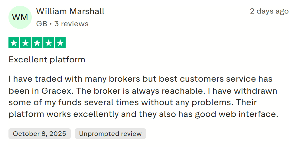 Служба поддержки Gracex работает 24/5 и отвечает в течение минуты. Для приоритетных клиентов предусмотрен персональный менеджер. Компания следует европейским нормам AML и GDPR, проводит комплаенс-проверку каждой операции и использует AI-системы для анализа транзакций. Все пользователи проходят процедуру KYC, что обеспечивает высокий уровень защиты как для клиента, так и для брокера.