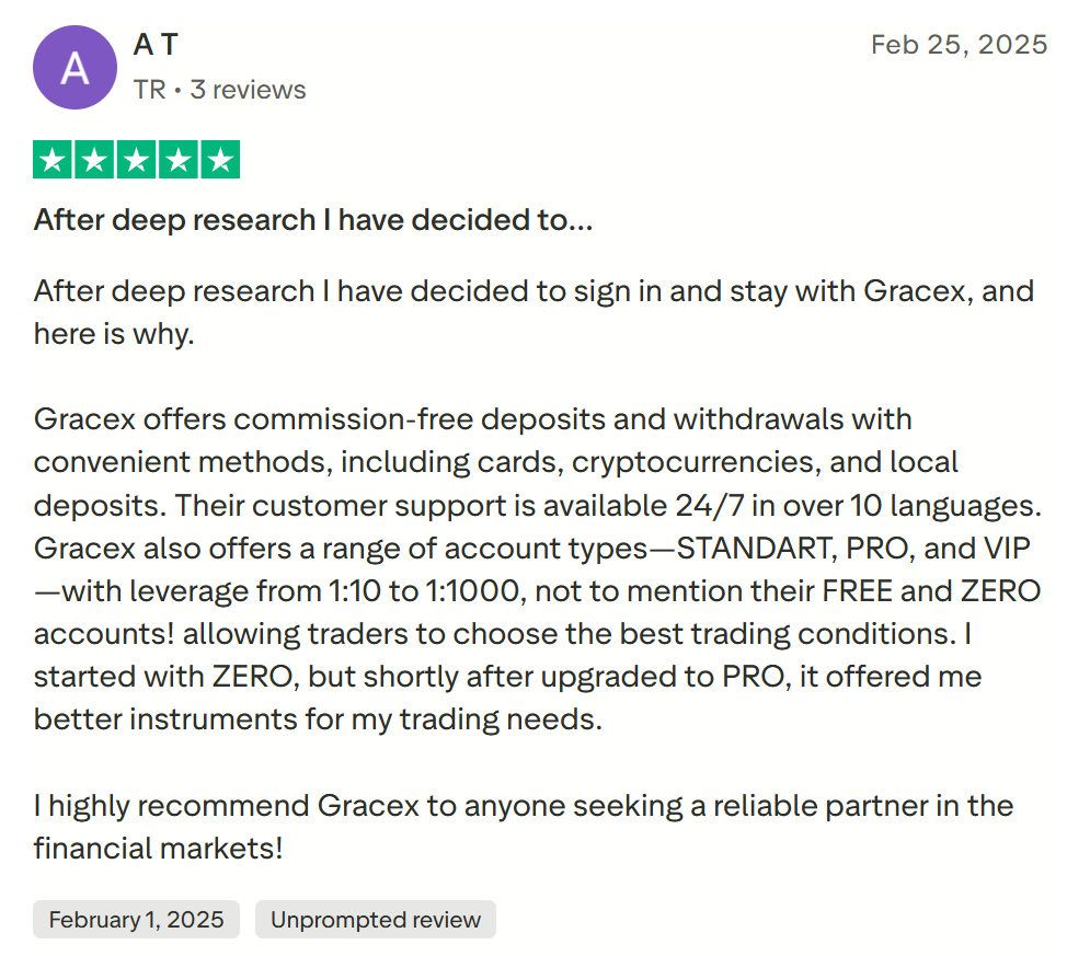 Gracex постепенно становится ориентиром для других брокеров. Международные рейтинговые агентства отмечают высокий уровень надёжности, скорость и прозрачность исполнения. Клиенты из 30 стран используют платформу, а 93 % из них готовы рекомендовать Gracex коллегам. Это не случайность — это результат системной работы, где качество встроено в каждый этап взаимодействия.